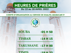 Heures de prières du 22 au 28 Avril 2022